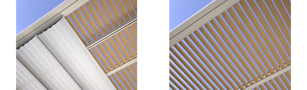 氣候罩由一系列鋁板條(11x4 厘米)組成,提供與結構相同的顏色,可使用遙控器將其定向至 90°。